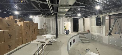 In 2022, we identified unsafe conditions that required the deconstruction of the auditorium and the creation of a temporary gathering and performance space. The auditorium became a shadow of the prized theater it once was, resulting in challenging conditions for teaching, presenting, and performing. Seating consisted of folding chairs, soundproofing was removed, and the stage was unusable and replaced by a makeshift platform. We used the space, but our students were unable to truly thrive in the auditorium.